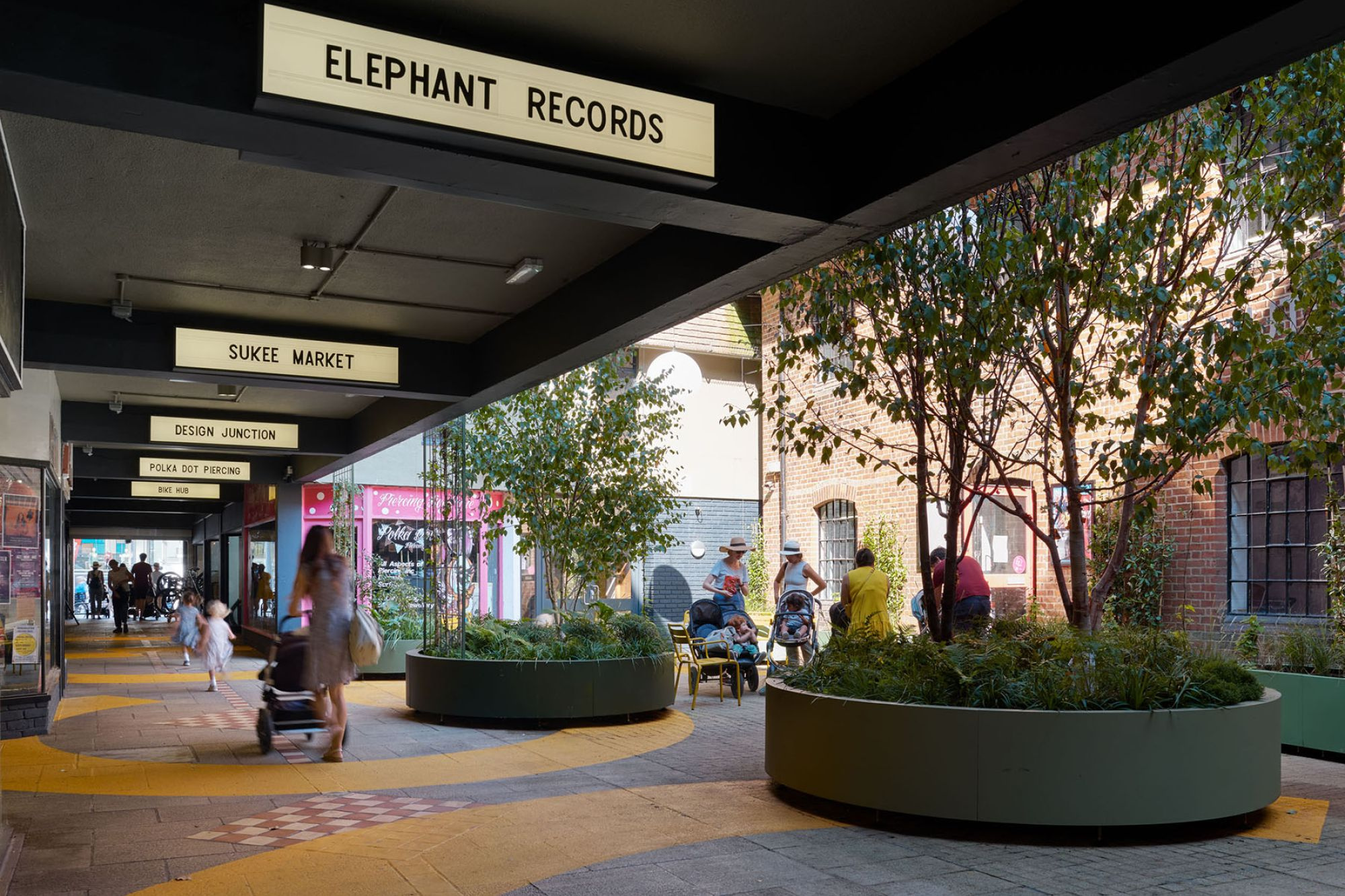 In 2021 Studio Multi was appointed by Winchester City Council to help Kings Walk, a 1970s shopping arcade that was dated and tired but had an interesting mix of motivated, independent tenants including a cycle-focussed café; bike shop; record store; craft shops; a Chinese supermarket and a community theatre. Studio Multi brought together a team of other small creative studios including landscape architect Tim Osborn, lighting designer Light Follows Behaviour, and graphic designer Tim George to help deliver a public realm project that caters for a diverse mix of people and has resulted in a significant increase in footfall. The supply chain was entirely local and, as this project was led by the City Council, had to comply with stringent checks on their business practices. As a small practice Studio Multi has been working on smaller projects and selects suppliers who are ethically sound and preferably local to the project.