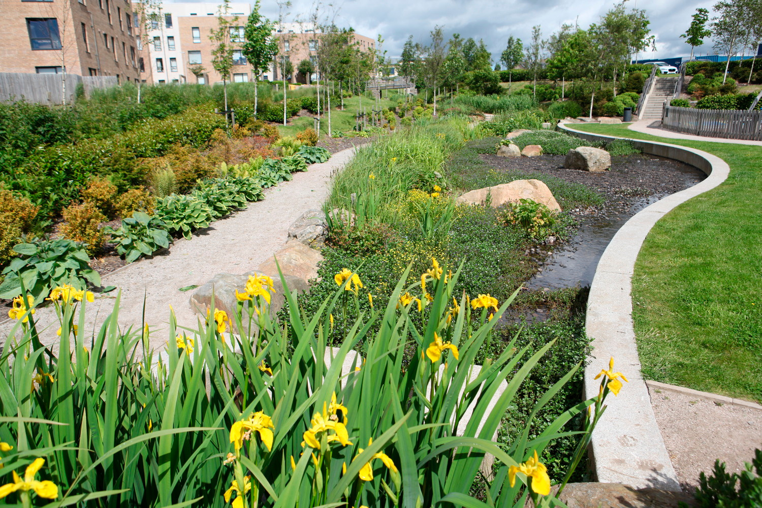 Optimised Environments (OPEN) transformed low-grade agricultural land with limited biodiversity into Cults Burn Park for the community of Countesswells, to the west of Aberdeen.