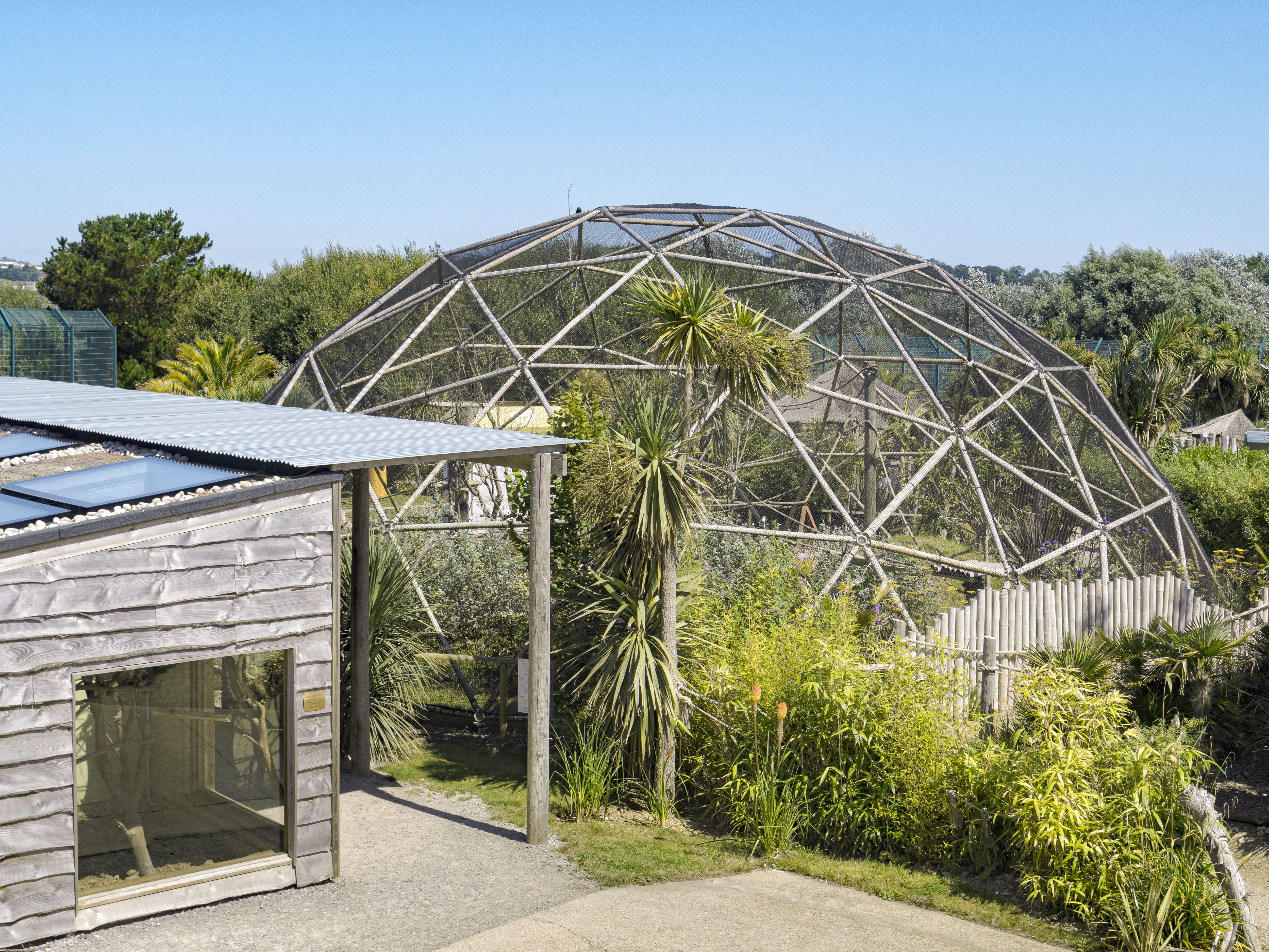 As you wander the avenues of rescued animals, many more tales of survival are told. The architecture reflects the animals’ stories of new opportunities and beginnings, turning away from traditional materials and methods to explore alternatives that complement the rescued residents and the natural world. Nowhere is this more evident than the towering primate homes; two massive geodesic bamboo domes that house families of rescued lemurs. Consisting of nearly 800 lengths of Guadua bamboo, which laid end-to-end would stretch two kilometres, these natural structures are every bit as impressive as the cathedrals of other cities. They aren’t just for show; their height and uninterrupted space allows the primates to move about unimpeded as they would in the wild, which, in turn, drives a swift recovery from previous traumas. They are linked by a house made of 102 bales of straw and a path recycled from an old swimming pool. It’s not just the animals that get a chance at a new life here, but materials and buildings too.